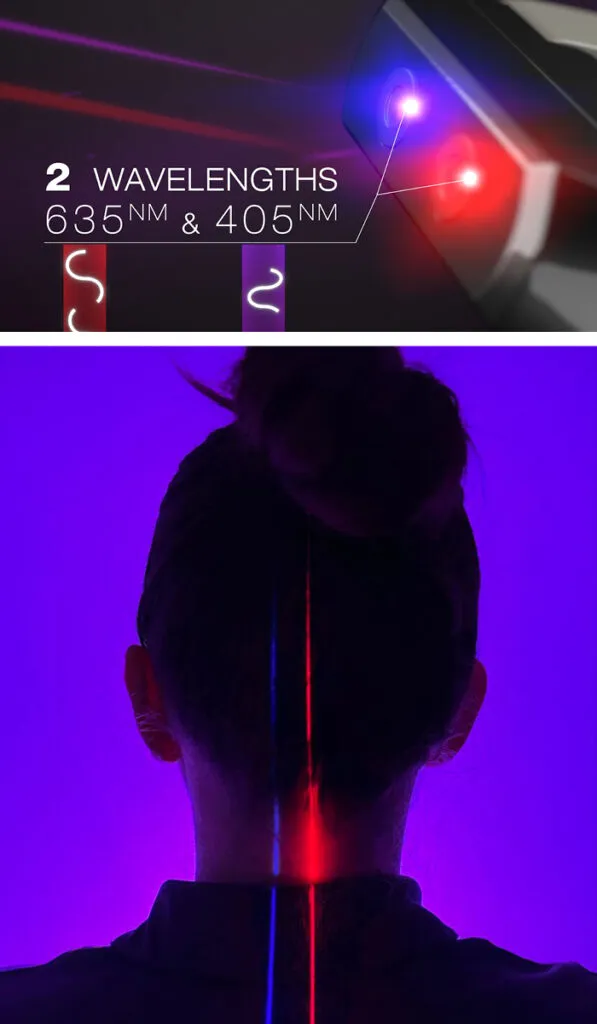 It’s designed for both aesthetic and therapeutic use, targeting skin rejuvenation, healing, pain reduction and inflammation reduction. The red light promotes cellular regeneration and collagen production, improving skin texture and reducing fine lines, while the violet light has antibacterial properties that can help clear acne and reduce redness for example.