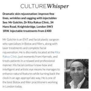 Fantastic article in Culture Whisper about the best facial experts in London featuring Mr Golchin at the Rakus Clinic.