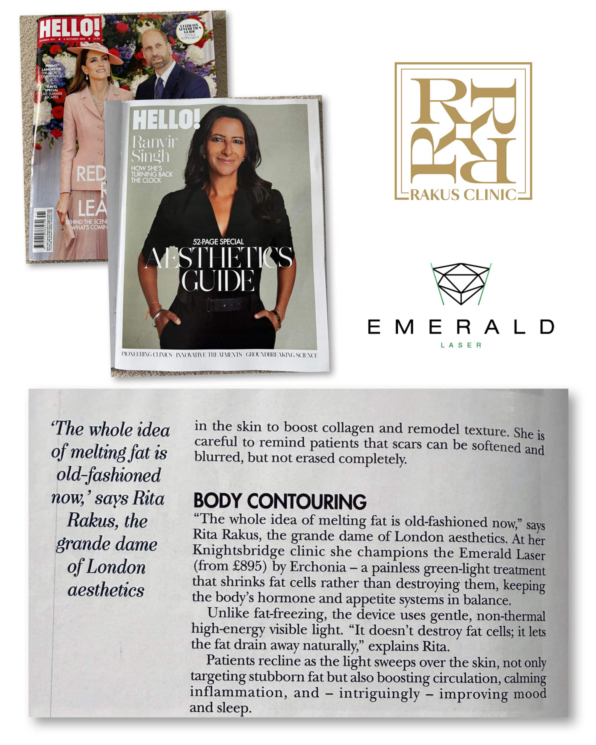 The amazing Emerald Laser featured in Hello Magazineโs 2025 Aesthetic Guide