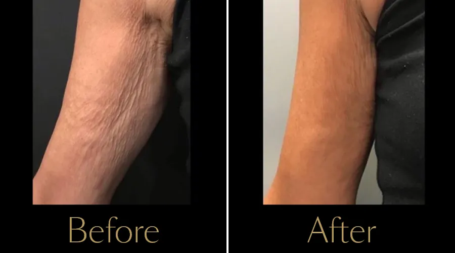 Common areas include the face, neck, décolletage, and hands—anywhere skin shows signs of dehydration or sagging. With Profhilo body we can treat multiple areas effectively including the upper arms arms, knees and stomach.